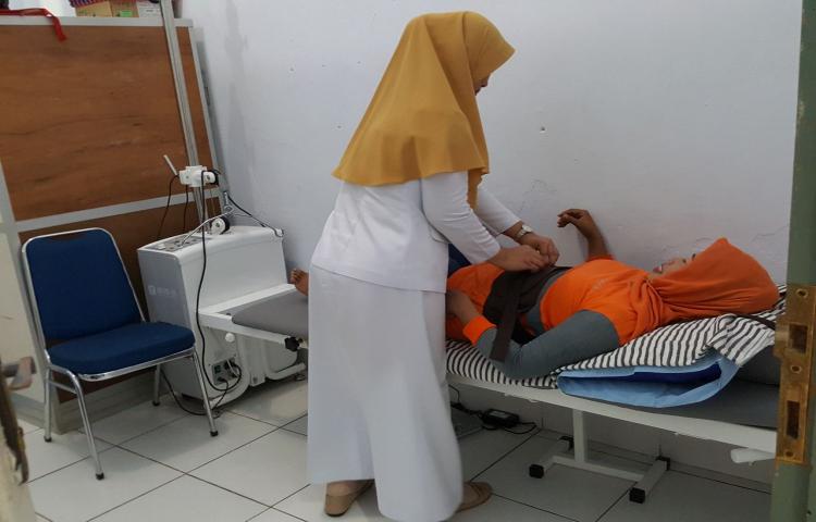 Traksi Lumbal untuk pasien dengan saraf terjepit (HNP) Pengertian: suatu teknik terapi yang menggunakan tenaga mekanik ataupun manual dengan cara kerja memisahkan/melong...