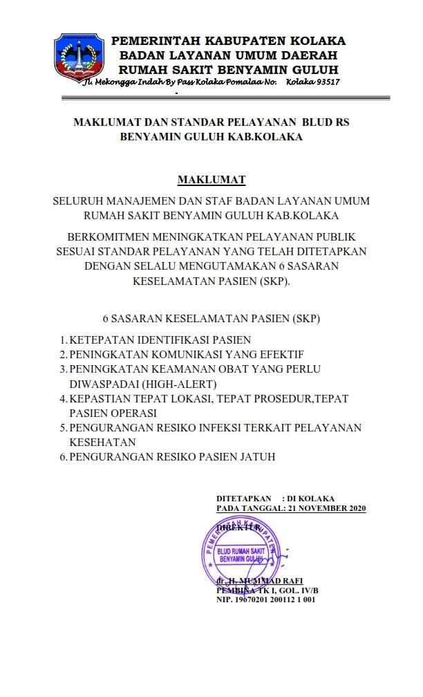 Email: rsud.kolaka@yahoo.com/ RSBG.KABKOLAKA@GMAIL.COM Web: www.rs-benyaminguluh.kolakakab.go.id